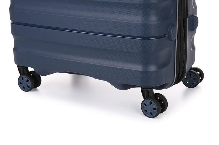 Integrated wheel housing for a precision fit and optimal handling Colour matched wheels for a coordinated, contemporary look Double durable polymer 360 spinner wheels for optimal maneuverability.